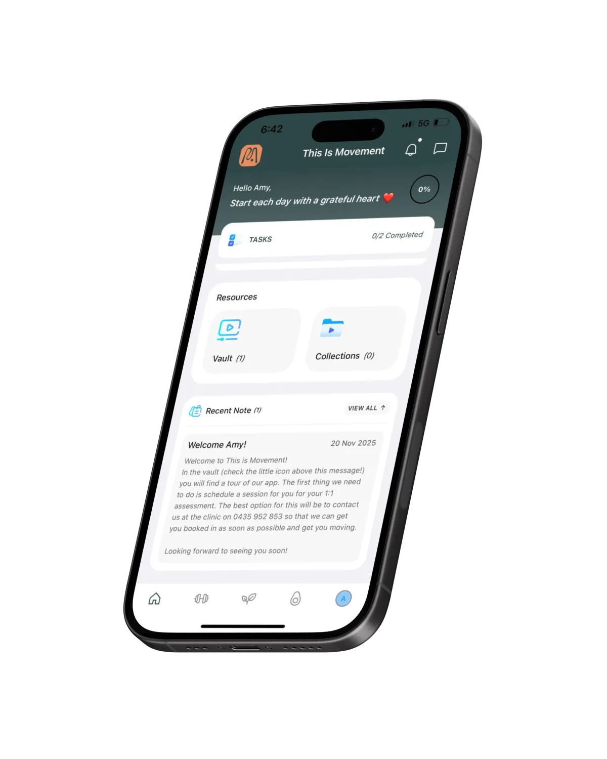The best of everything. Have a 1:1 assessment with a Physio & a PT, discuss your goals and we'll build out a program for you, with a tailored education package based on your history and your goals. direct messaging to your coaches and community support.